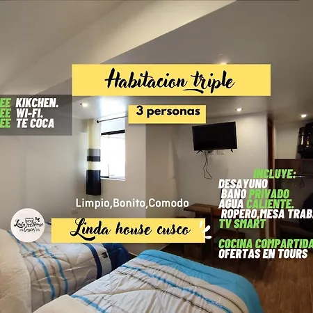 The centre of Cusco is a 30 minutes' walk of the hotel. The property in Cusco is 6 km from the Inca Qorikancha Ruins. Located a 20-minute drive from Sacred Valley of the Incas, the Linda House Cusco Bed & Breakfast puts the city at your fingertips. Paradero Zorro bus stop is within 600 metres of this hotel and 3.5 km from is enough to get to Wanchaq train station.
